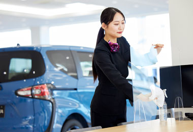 お客様に笑顔でおもてなしを行い、店舗のスタッフの活動へ繋ぐことで、お客様のカーライフを支えています。