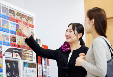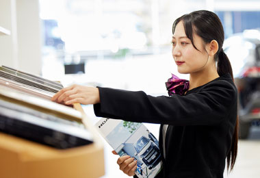 お客様のご案内や受付をする際は、笑顔で明るく接することを心がけています。お席へ案内後、ご用件を伺い、早急に対応します。作業待ちの際には、ご様子を伺いながらごゆっくり過ごせる空間を作ります。スタッフの顔を覚えてくださる方も多く、お客様との会話も業務中の楽しみです。