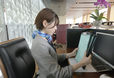 レセプションスタッフは、1日のご来店予定を把握し、お客様がスムーズに目的を達成できるように、お出迎えからお見送りまでの接客、担当スタッフへの取次などの各種ご案内を行います。